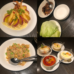 左側上から2番目の写真のイカの揚げ物と、その右側のスープが名物だそうです。 大阪でのちょっぴり贅沢な中華のランチにとってもオススメです。