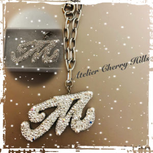 *イニシャルは、筆記体、ブロック体、どちらでもお作りできます。イニシャル部分は、クリスタルのみ、クリスタルとパールの組み合わせなど、お好みに合わせてお作り致します。