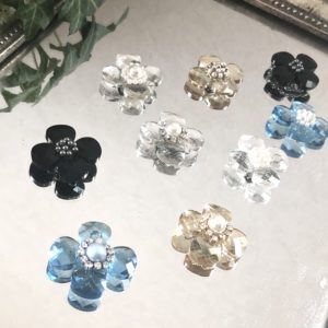 ☆花びらのカラー:クリスタル(透明)、ブラックダイヤモンド、ブラック(クリスタル(透明)の花の芯部分の色は、ミステリアスなブルーといろいろな色に輝くオーロラからお選び頂けます。)