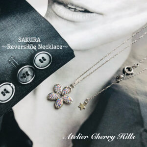 ☆チェーンはアジャスター付き55cmです。可愛い星型のチャームが先端に付いたスライドチェーンになっているので、洋服の襟に合わせて長さ調整が可能でとても便利です。