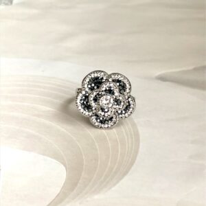 カメリアのお花型にびっしりと極小の上質なクリスタルを敷き詰めた上品なリングです。
