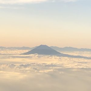 10月31日、16時頃、羽田空港を発って少し曇りがちな空へ飛び立ち、一路鹿児島空港へ向かいました。もちろん座席は右側の窓側です。しばらくして見えてくるのは、雲海の上に綺麗な姿を覗かせる富士山(^^)