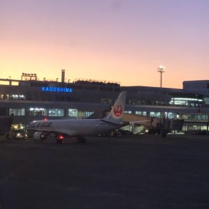 そして、いよいよ九州上空。そろそろ着陸体制に入りました。間もなく日が暮れます。