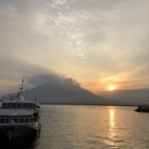 翌日、鹿児島港から早朝の高速船トッピー&ロケットで種子島に向かいました。日が昇り始めた桜島はとても綺麗です。