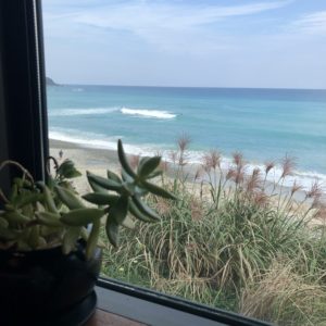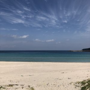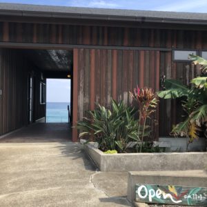 鉄砲館から島の北西端にある浦田海水浴場を経由して、島の中腹東海岸にあるサーファーが集う見晴らしのよいカフェでランチ。