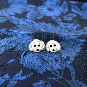 ピアスも別の友人からの一言が始まりです。「あの白いわんちゃんの指環をピアスにできない?」 耳にわんちゃんのお顔・・・これはさすがに出来るだけ小さい方がいいと判断、耳たぶに小さく乗る大きさ、よく見るとわんちゃんというサイズになっています。