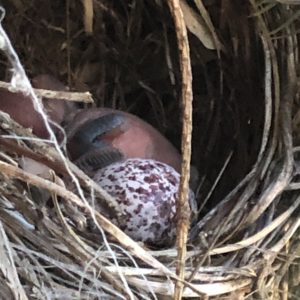 書き終えた後、覗いたら丁度親鳥のいないタイミングだったので、巣の写真を撮り、確認してみました。確実な事は言えませんが、やはり残念ながら2羽しか確認できませんでした。残りの1個は孵らなかったのかもしれません(≧∀≦)