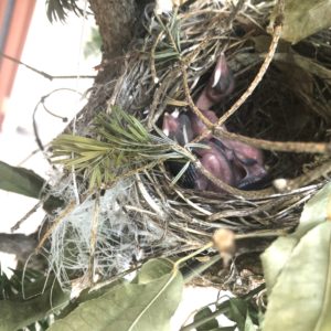 このブログを書いた翌日の朝のことでした。突然、まだ飛べないピナ達、親鳥達、全ていなくなってしまいました。厳しい自然にさらされたようです。1羽のヒナだけ巣のある木の根元に残されていましたので、土に埋めました。悲しい悲しい出来事でした。あれから10日ほど経ち、ようやくこの追記を書けるようになりました。