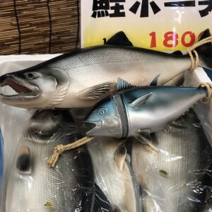 また、【松島さかな市場】というお土産処があります。そこでは、牡蠣バーガーなるものも売っていますし、牡蠣小屋があって牡蠣の食べ放題もあります。私は牡蠣が大の苦手なのでご縁がないですが、家族が食べた牡蠣バーガーは美味しかったようです。そして面白いお土産もありました。この魚バッグを持って歩く姿や学校の机の上に魚のペンケースが乗っている机を想像するだけで笑えます(^ ^)