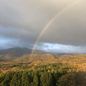 前回の旅では、秋保温泉の後、宮城蔵王に泊まりました。11月でしたので、終わりの頃の紅葉にかかった美しい虹を見ることができました。