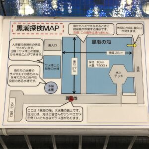 専用エレベーターに乗って上に上がる『黒潮探検』です。これは、巨大な水槽を上から見ることができる場所でした。水族館の全容を上から見ることができて、なかなか貴重な体験でした。