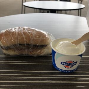 ブルーシールアイスクリームも先日サトウキビ味を食べたらとても美味しかったので、ここでは塩ちんすこう味をチョイス。ブルーシールは甘すぎずさっぱりしていて美味しいですね。