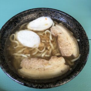 今回の旅では、いろんな沖縄そばを食べました。沖縄そばは、おだしの効いたスープに、うどんのような、ラーメンのような、蕎麦のような麺と、ねぎやはんぺんが入っています。そこに三枚肉のいわゆるチャーシュー、またはソーキという柔らかく煮た骨付き肉が乗っています。お店ごとに麺も味も違うので、色々食べ比べてみて自分の好みに合うお店を見つけるのも楽しいと思います。今回は3箇所のお蕎麦屋さんに行ったので、簡単に紹介します。