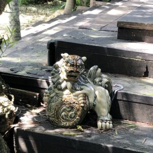 カフェの入り口とカッコいいシーサー