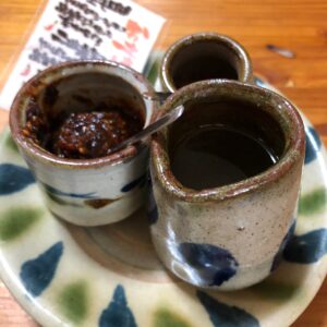 ゆし豆腐入り沖縄そばとやむちんの調味料入れ