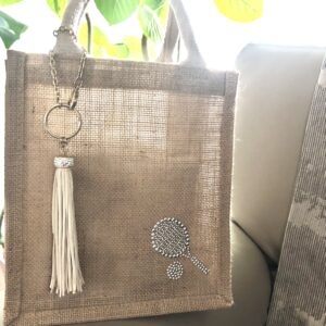 そして、どうせなら楽しくスクールに通いたいと、バッグにもラケットのモチーフをつけてみたのが始まりです。
